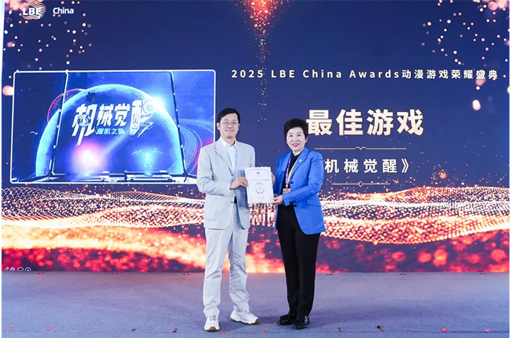 “2025 LBE China Awards动漫游戏荣耀盛典”正式启动。现场揭晓包括最佳动画电影奖、最佳国漫作品奖、最佳游戏奖、最佳空间交互设计奖、最佳动画技术成就奖、最佳先锋探索奖、最佳跨界创新奖在内的七大奖项。其中《机械觉醒》荣获“最佳游戏奖”,在商业模式与用户体验上树立了新标杆,展现出“动画+”跨界融合的广泛可能。